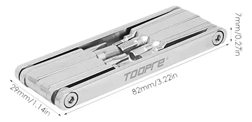 Hecha de acero al cromo vanadio, que es resistente a la corrosión y puede soportar grandes fuerzas de rotación durante el uso. Equipado con llave Allen M2/M3/M4/M5/M6/llave de arranque en cruz/arrancador de /llave de ciruela T25, el kit multiherramienta para bicicleta TOOPRE tiene su apoyo en cada viaje.